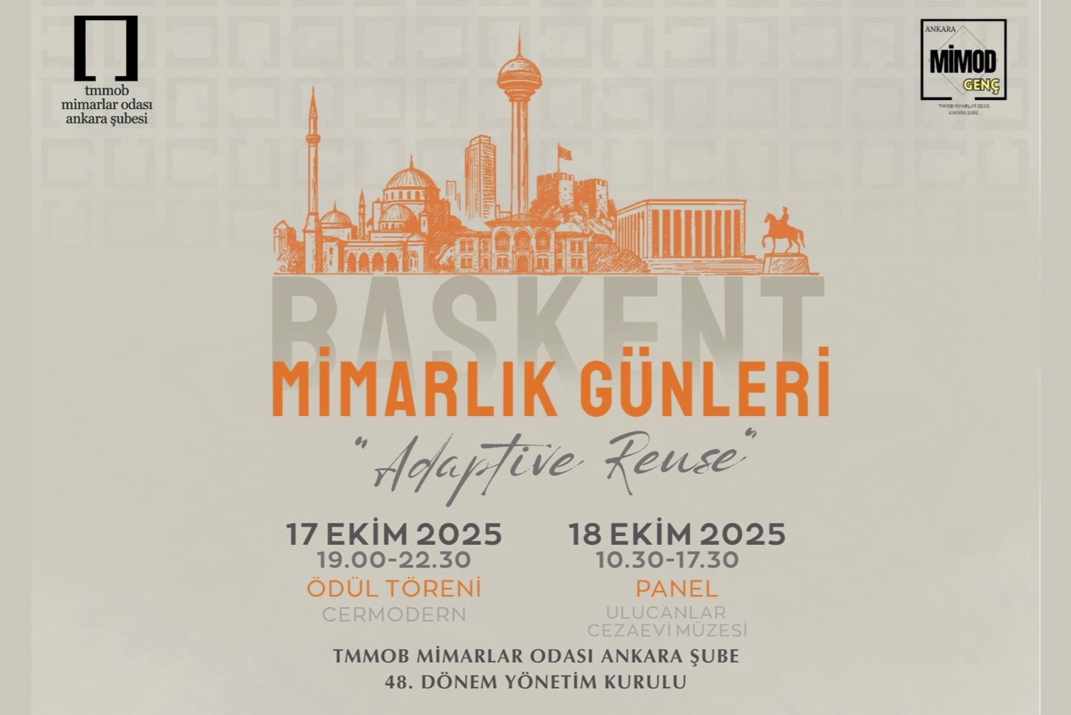 Mimarlar Odası Ankara Şubesi'nin, Adaptive Reuse temasıyla düzenleyeceği Başkent Mimarlık Günleri etkinlikleri kapsamında sergi, ödül töreni ve panel 17-18 Ekim 2025 tarihlerinde gerçekleşecek.