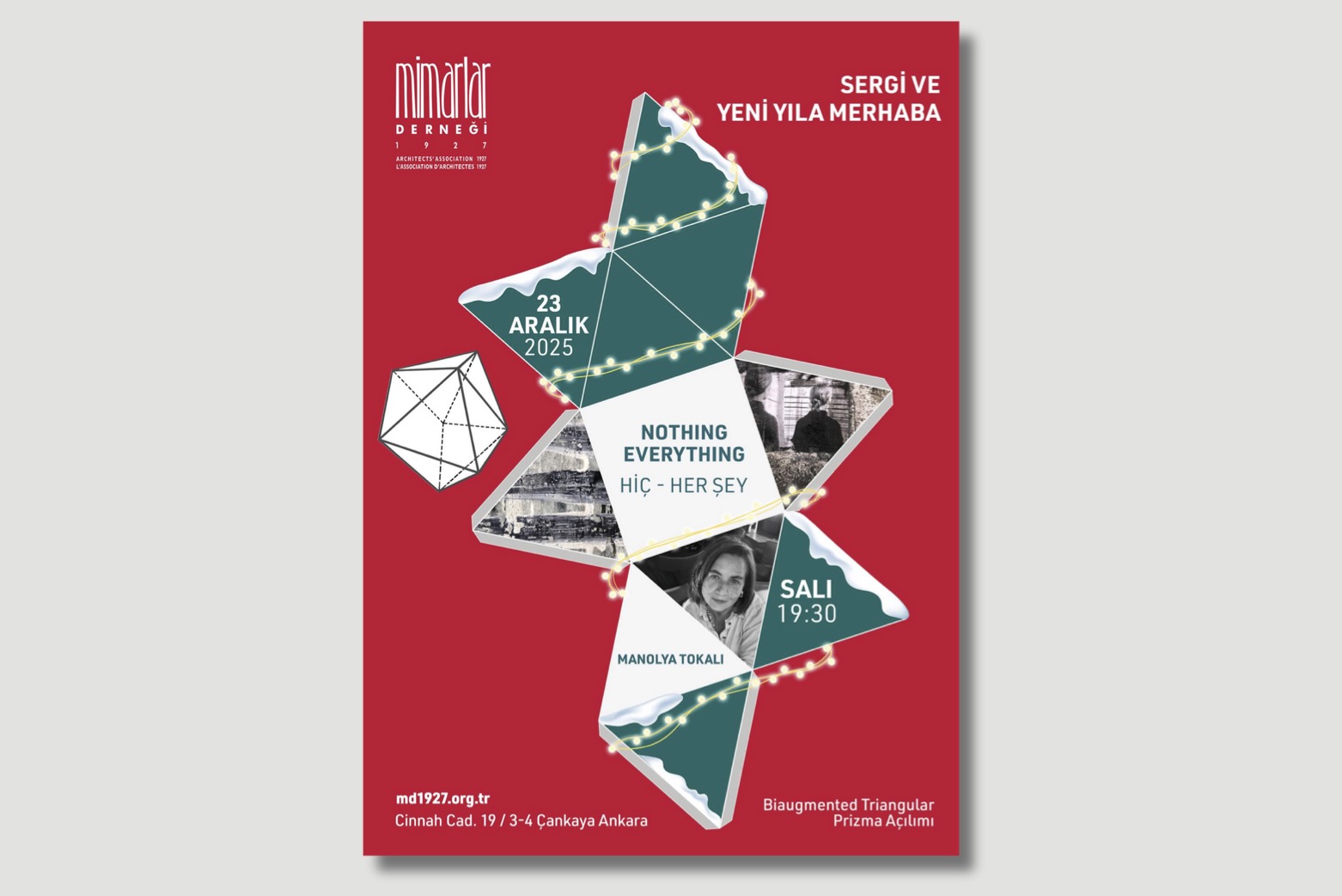 Mimarlar Derneği 1927, 23 Aralık 2025 Salı günü Manolya Tokalı tarafından gerçekleştirilecek “Nothing – Everything/ Hiç-Her şey” başlıklı sergiye ve yeni yıl etkinliğine ev sahipliği yapacak.