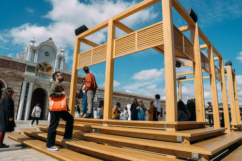 Sanatçı Cevdet Erek, “2017 yılında Venedik Bienali’ne katılmıştım, İKSV ile Türkiye Pavyonu sergisini düzenlemiştik. Venedik Bienali ile tekrar çalışmak müthiş bir duygu. Bir İstanbul çocuğu olarak burada, İstanbul’da Venedik Bienali’ni ağırlamak, onların projesini buraya getirmek, İKSV’nin buradaki evsahiplerinden biri olması, burada kamusal bir alanda, İstanbul Büyükşehir Belediyesi'ne (İBB) ait Artİstanbul Feshane’nin bahçesinde, böyle bir projeyi gerçekleştirmekten dolayı çok mutluyum. Uzun zamandır uğraştığım, denemelerini yaptığım sesli bir mimari fikri bu. Bu yapı içinde ulaşılabilirlik çok önemli. Umarım hayal ettiğimiz katılımlara ulaşır,” dedi.