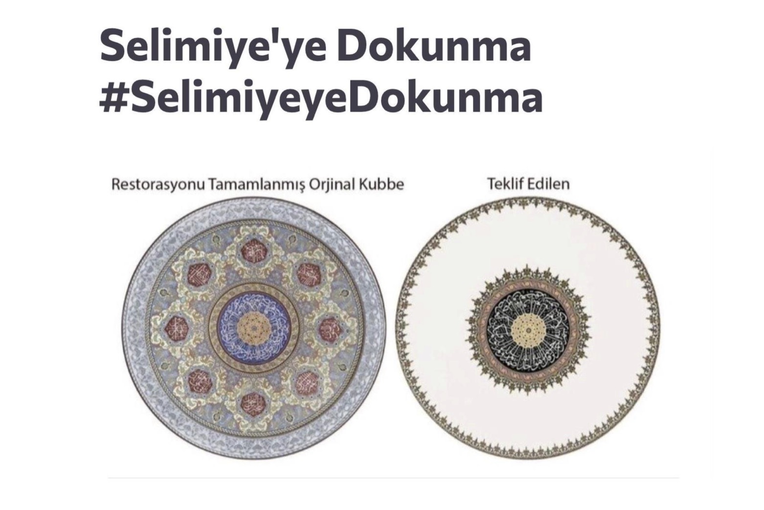 Mimar Sinan'ın ustalık eseri olarak kabul edilen Edirne Selimiye Camii'nin kubbesindeki orijinal kalem işlerinin kazınarak beyaza boyandığı iddiaları, kamuoyunda büyük tepkiye yol açtı. Zeynep Bayraktutar tarafından Change.org'da başlatılan "Selimiye'ye Dokunma" başlıklı imza kampanyasını bir günde 5 bine yakın kişi imzaladı.