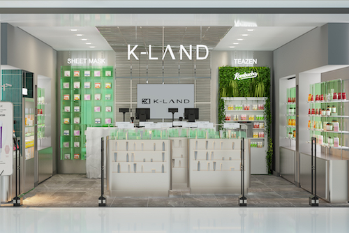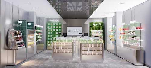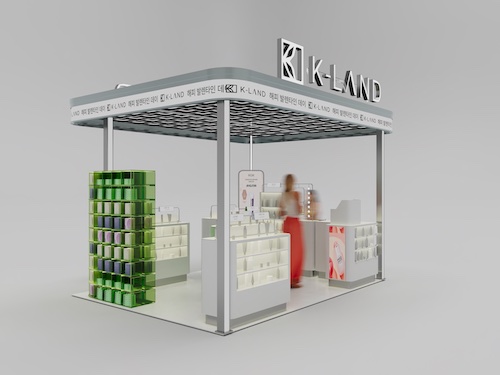 K-LAND Kozmetik konsepti, markanın dinamik yapısını mimariye taşıyan açık planlı bir mağaza ve tamamlayıcı bir kiosk tasarımından oluşuyor. Mağaza mekânında vitrinsiz giriş yaklaşımı tercih edilerek kullanıcıya doğrudan içeri yönlendiren akışkan bir yaklaşım benimsendi. Metalik kütleler, doğal dokular ve mesh tavan yüzeyi, markanın yalın ama güçlü estetiğini vurguluyor.