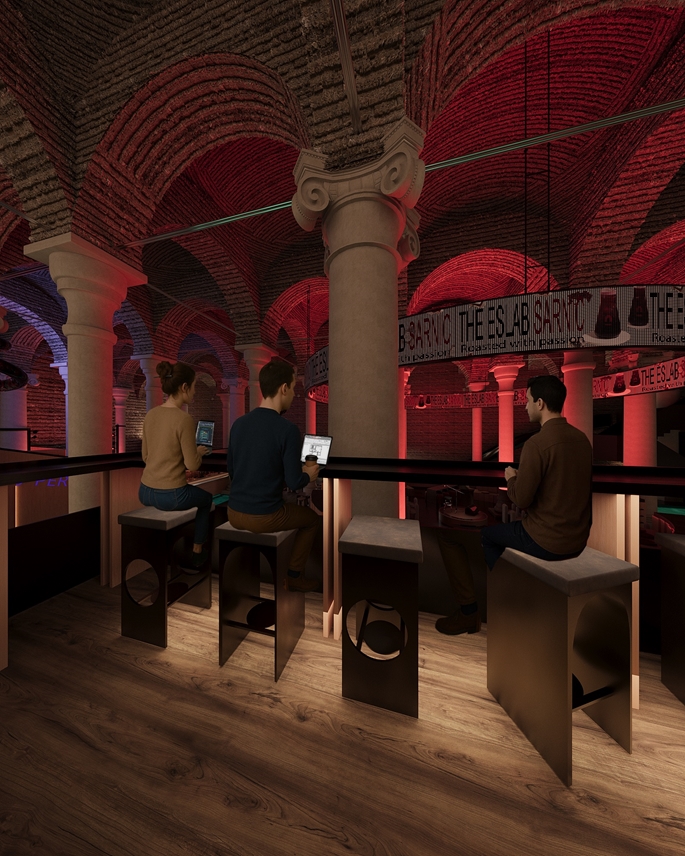 The Eslab Sarnıc, mekânsal tasarımı damıtma süreci gibi ele alır. Tarihi bir yapının katmanlarını, çağdaş bir işlev üzerinden sadeleştirerek yeniden tanımlar.