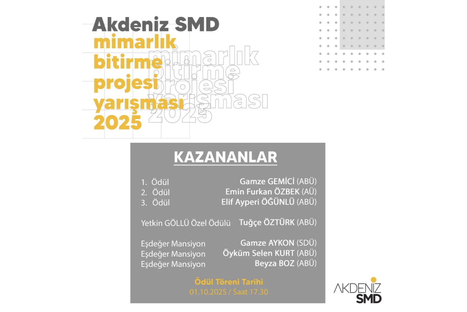 AKDENİZ SMD Mimarlık Bitirme Projesi Yarışması Sonuçlandı