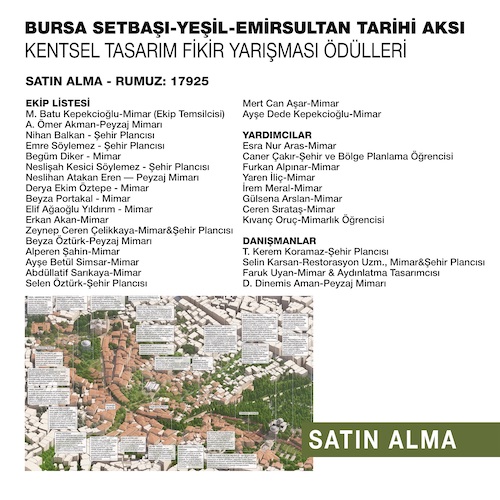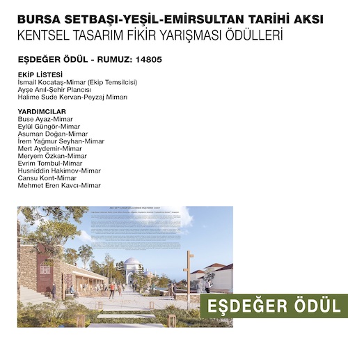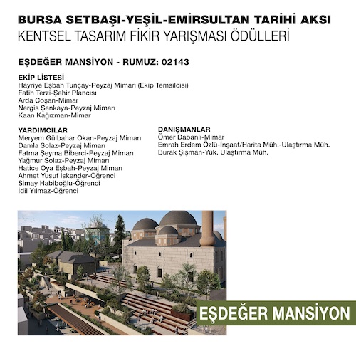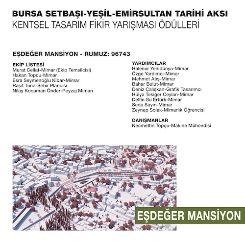 Yıldırım Belediyesi; tarihi, mimarisi, kültürel dokusu ve dini mekanlarıyla Türkiye’nin en önemli turizm güzergahlarından biri olan, Setbaşı, Yeşil, Emirsultan hattını hak ettiği değere kavuşturmak için ‘Bursa Setbaşı-Yeşil-Emirsultan Tarihi Aksı Kentsel Tasarım Fikir Yarışması’ düzenlemişti.