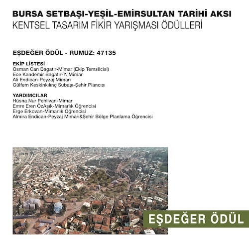 Yıldırım Belediyesi öncülüğünde, Mimarlar Odası Bursa Şubesi, Şehir Plancıları Odası Bursa Şubesi ve Peyzaj Mimarları Odası Bursa Şubesi iş birliğiyle düzenlenen Bursa Setbaşı-Yeşil-Emirsultan Tarihi Aksı Kentsel Tasarım Fikir Yarışması sonuçlandı.